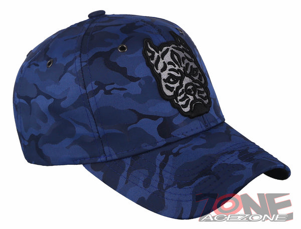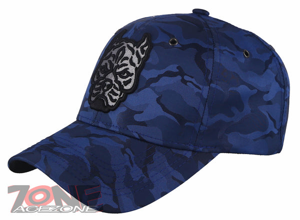 NEW! DOG PITBULL HEAD BASEBALL CAP HAT CAMOUFLAGE ROYAL BLUE