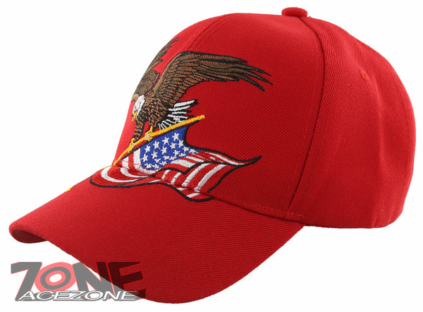 NEW! EAGLE USA FLAG NEW BALL CAP HAT RED