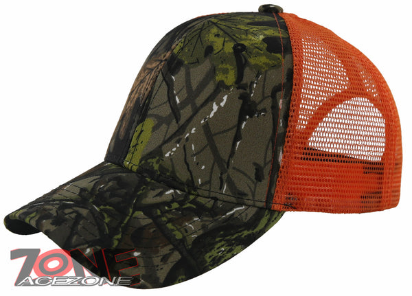 NEW! PLAIN SOLID MESH SNAPBACK BASEBALL CAP HAT ORANGE FOREST CAMO