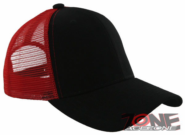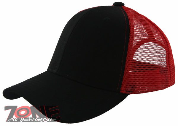 NEW! PLAIN SOLID MESH SNAPBACK BASEBALL CAP HAT RED BLACK