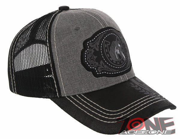 NEW! RODEO HORSE SHOE MESH TRUCKER SNAPBACK BASEBALL CAP HAT GRAY BLACK