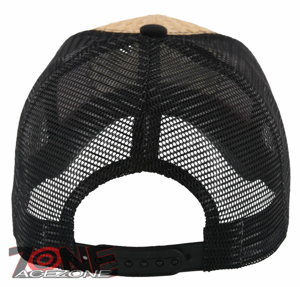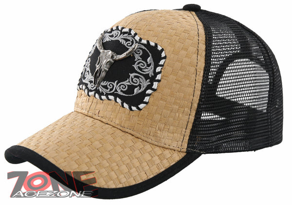 NEW! STRAW MESH METAL SKULL HORN BALL CAP HAT BLACK