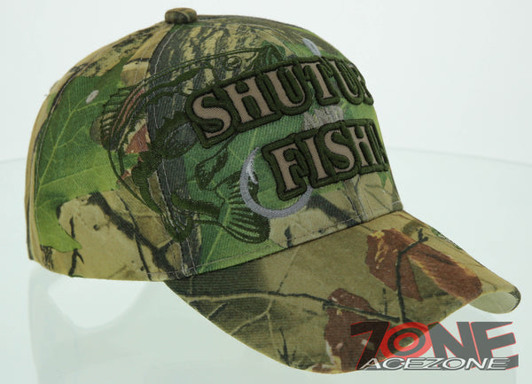 NEW! BASS SHUT UP AND FISH FISHING CAP HAT NW CAMO
