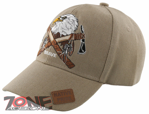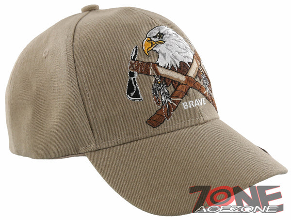 NEW! NATIVE PRIDE BRAVE AXE EAGLE BASEBALL CAP HAT TAN