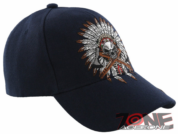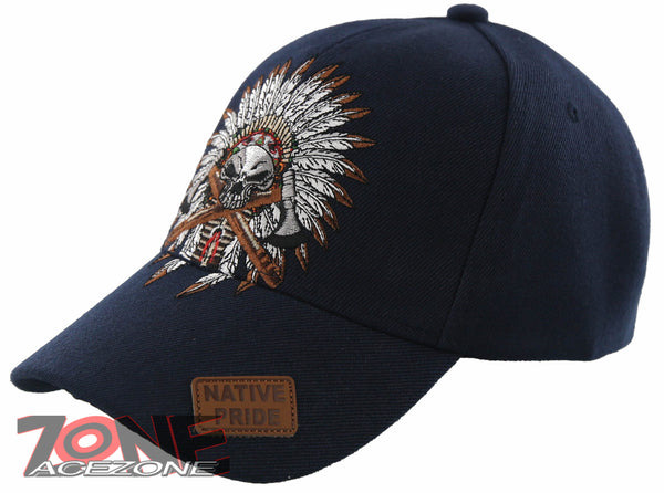 NEW! NATIVE PRIDE HONOR AXE CHIEF SKULL HEAD BASEBALL CAP HAT NAVY