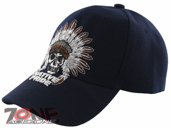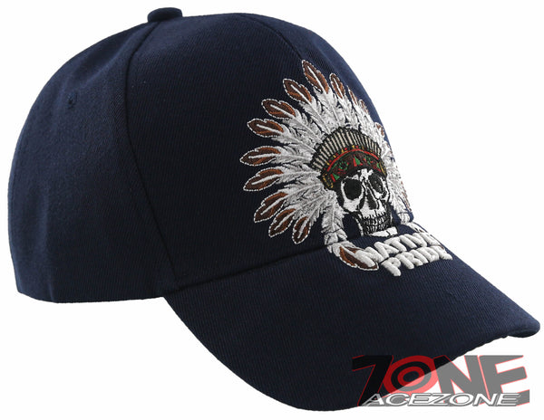 NEW! NATIVE PRIDE HONOR CHIEF SKULL HEAD BASEBALL CAP HAT NAVY
