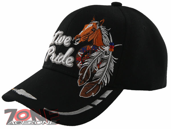 NEW! NATIVE PRIDE HORSE FEATHERS BASEBALL CAP HAT BLACK