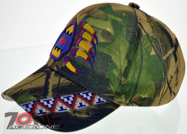 NEW! NATIVE PRIDE INDIAN AMERICAN SIDE BEAR CLAW FEATHERS CAP HAT CAMO