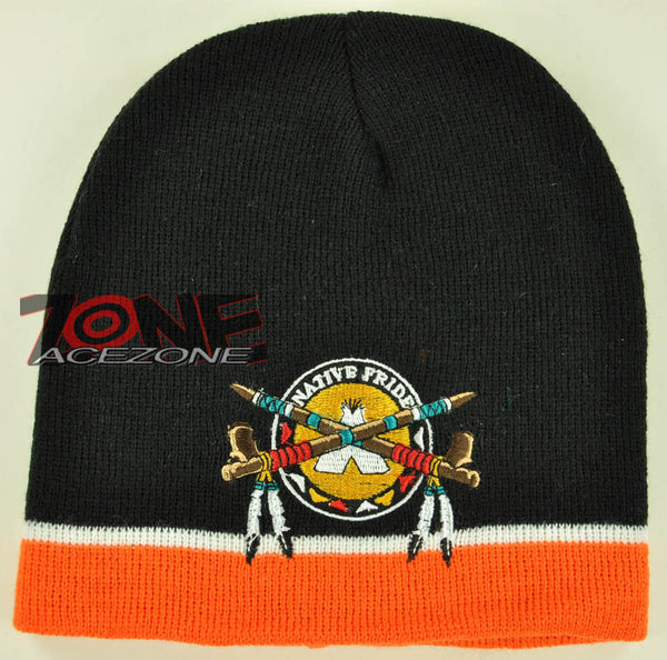 NEW NATIVE PRIDE PEACE PIPES BEANIE KNIT CAP SKULL WN ORANGE