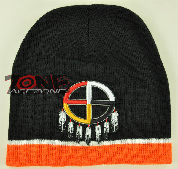 NEW NATIVE PRIDE WHEEL HOOP INDIAN FEATHER BEANIE KNIT CAP SKULL WN ORANGE