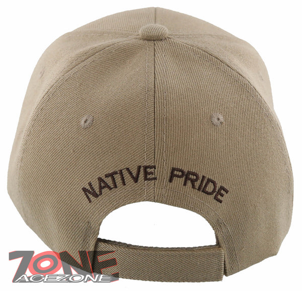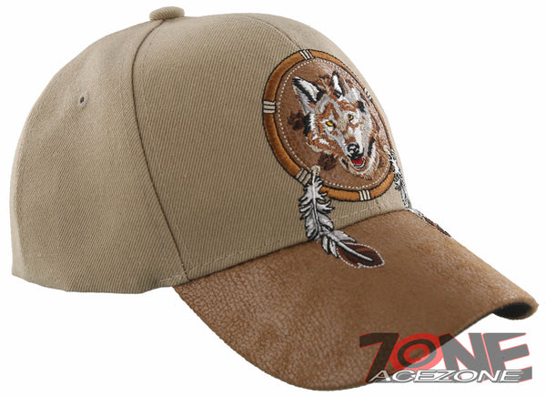 NEW! NATIVE PRIDE WOLF FEATHERS FAUX LEATHER BASEBALL CAP HAT TAN