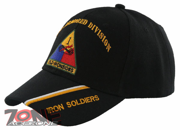 NEW! US ARMY 1ST ARMORED DIVISION OLD IRONSIDES IRON SOLDIERS CAP HAT BLACK