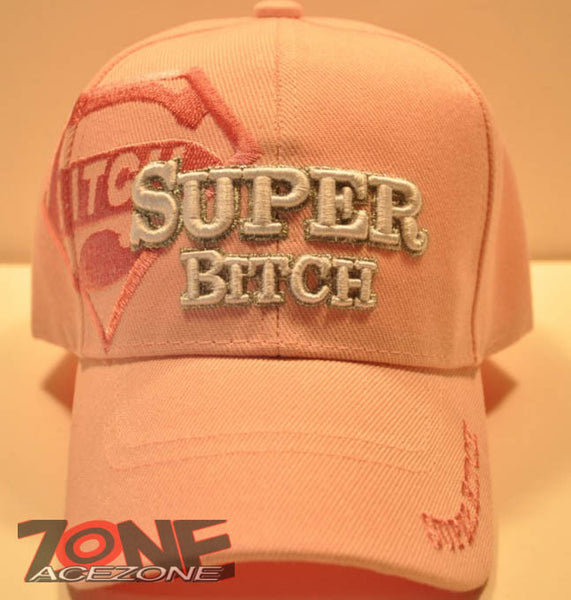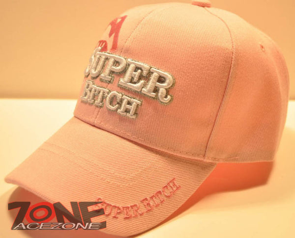 WHOLESALE NEW! SUPER BITCH W/SILVER YARN CAP HAT PINK